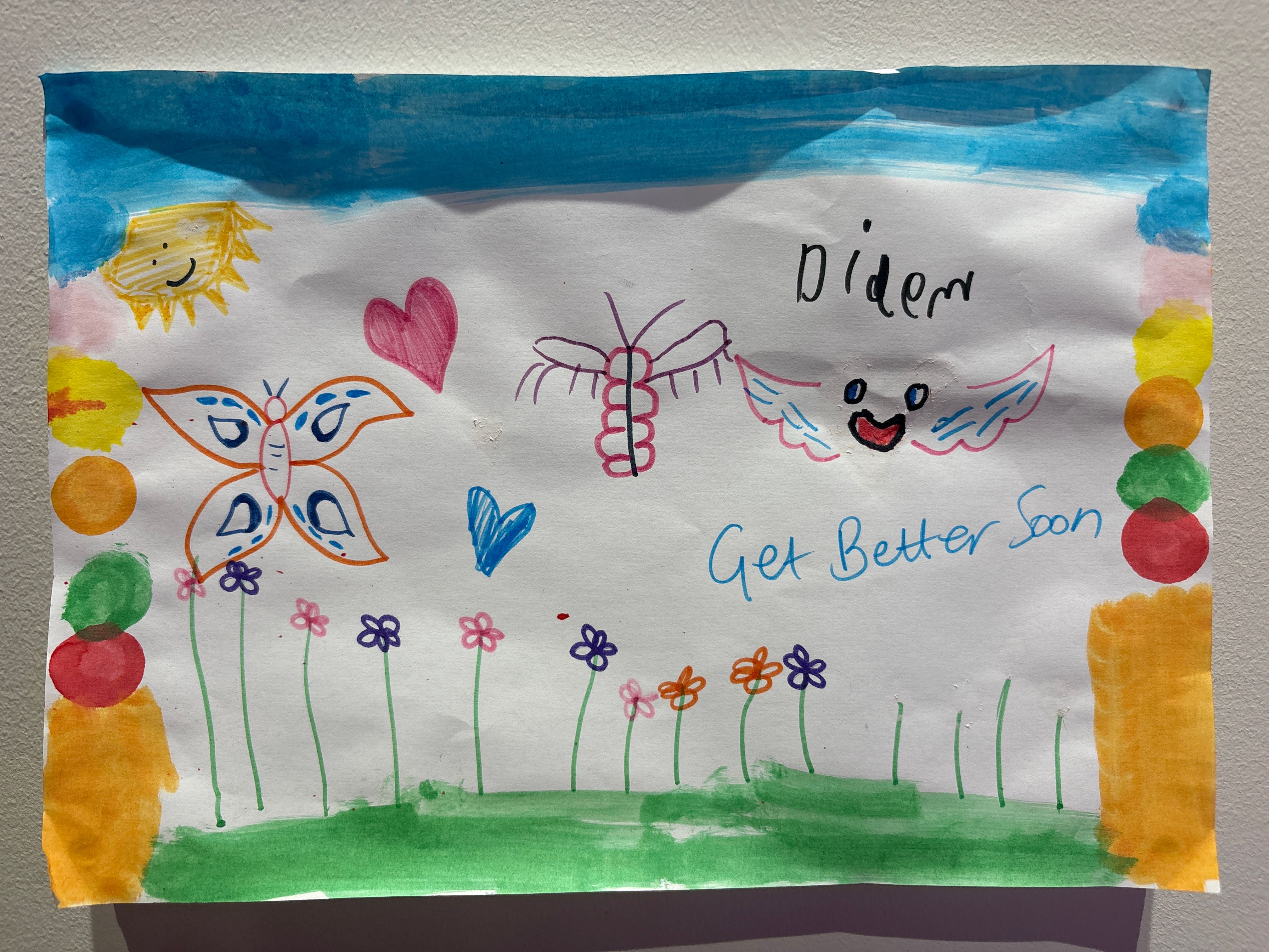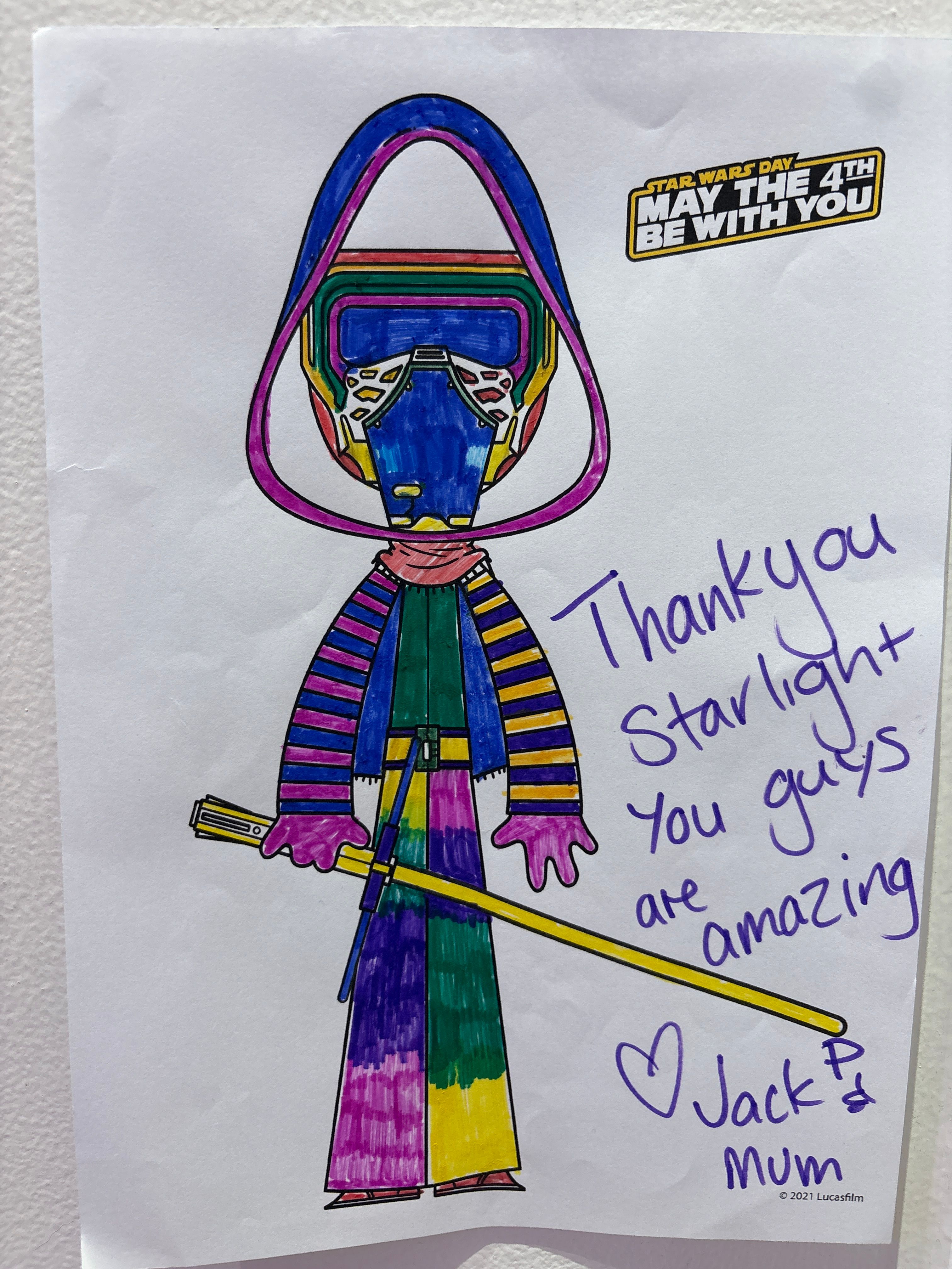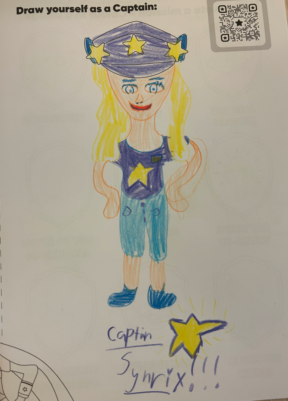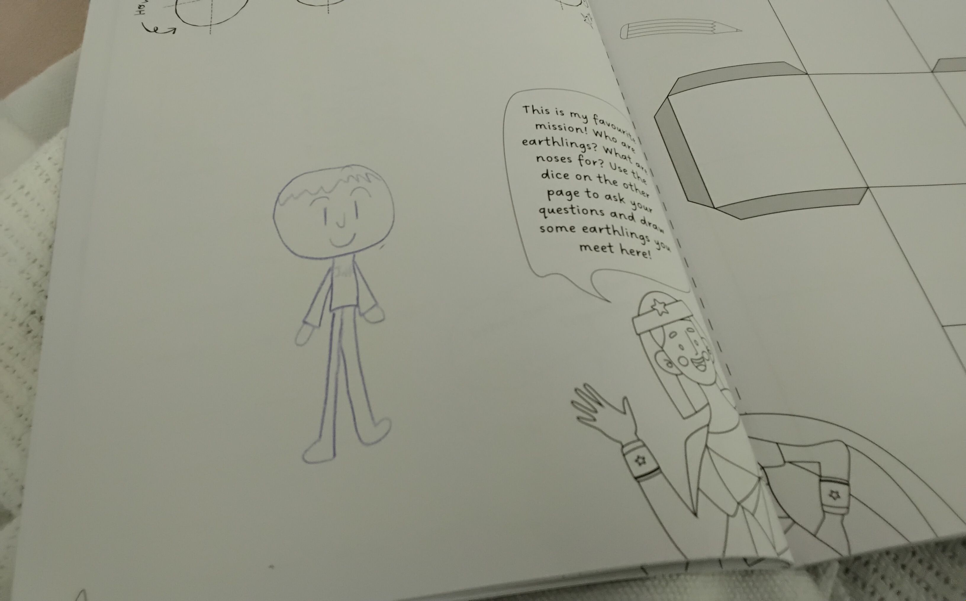 In hospital the starlight captains came into my room and gave me a bag, and inside there was a book. And I drawed something inside the book! I'm happy to show you.