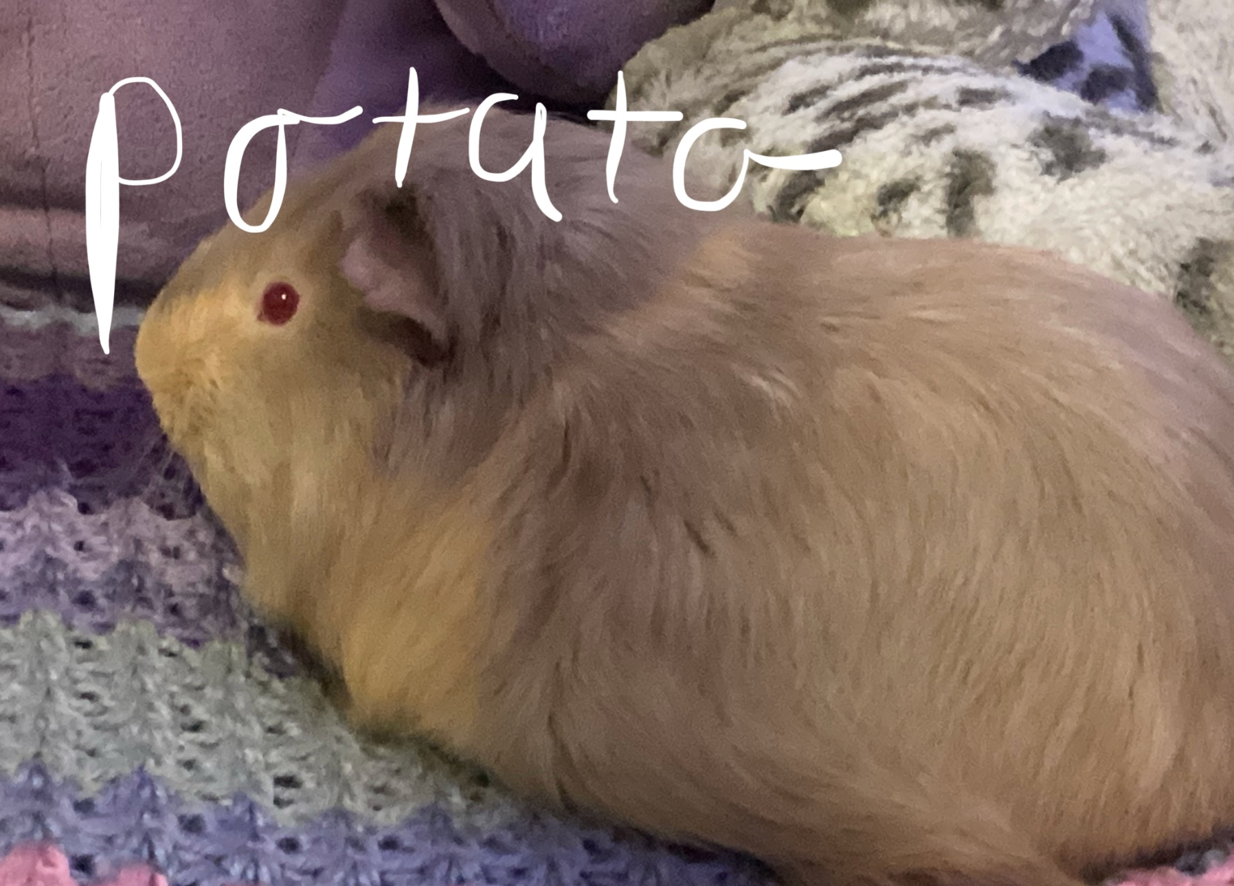 Potato the potato pig is just a Guinea pig that looks like a potato with ketchup on it