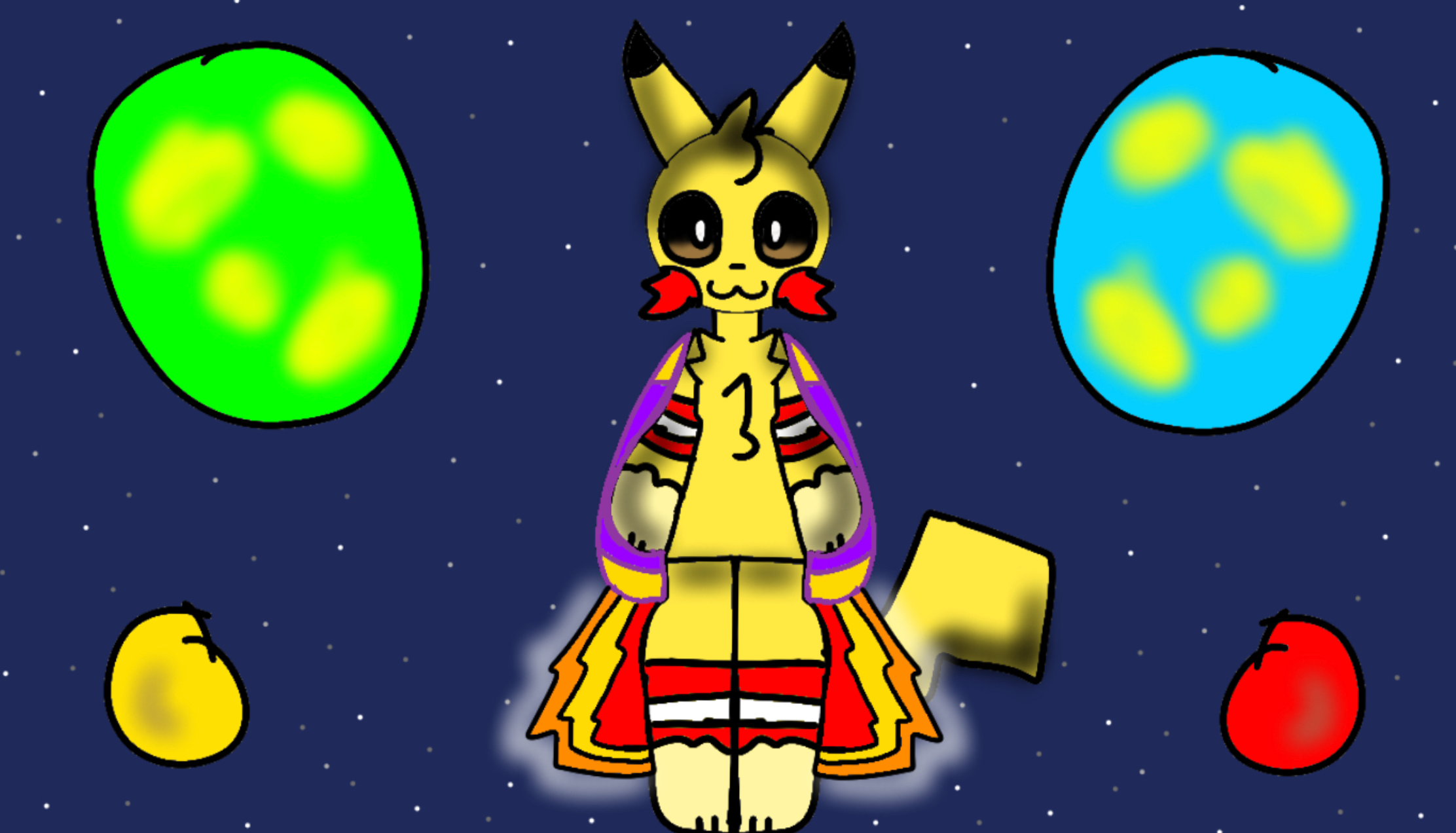 Hello I am a captain pikachu aka captain tiger I am a digital artist I made me pikachu flying to outer space in a jet pack on a mission
